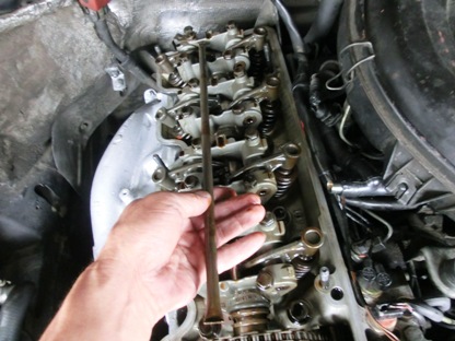 | 私の車、4気筒ですのでロッカーアームが8個 上部を木で押さえてみても、違和感はありません。 正常な状態がどうなのかが分かっていませんのでなんの役にも立ちませんけど。 |