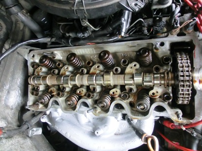 | 次にロッカーアームアッセンブリーを取り外し、ロッカーアームの状態確認。 奥から1つ目と2つ目の吸気側のロッカーアームが少々、摩耗していたのでスピードジャパンへ注文 予算に限りがありますので今回は2つ。 バルブリフター(HLA:ハイドロリック・ラッシュアジャスターとも言う)はこの際、8つとも購入 ロッカーアーム 102 050 06 33 \7,030×2個=14,060 バルブリフター 103 050 00 80 \2,678×8個=21,424 消費税 3,548 合計\39,032 新品部品の画像を撮り忘れました。 |