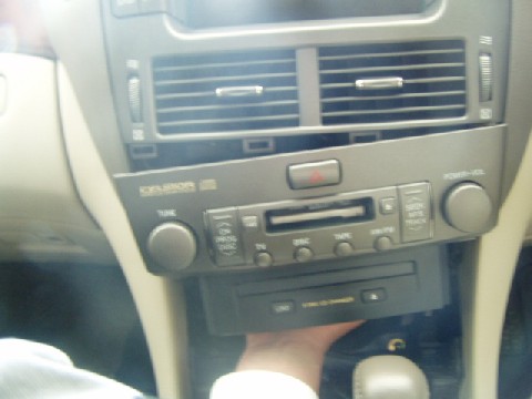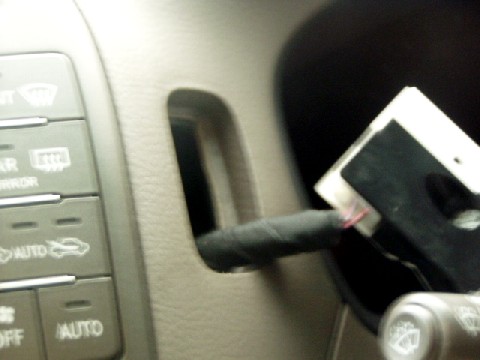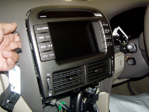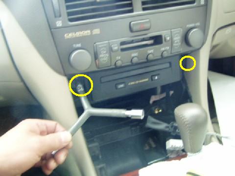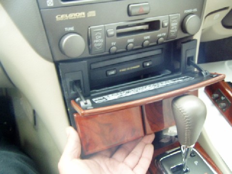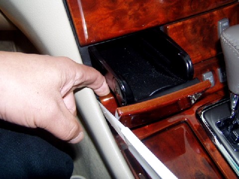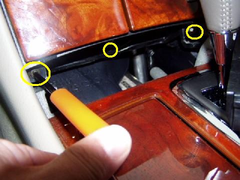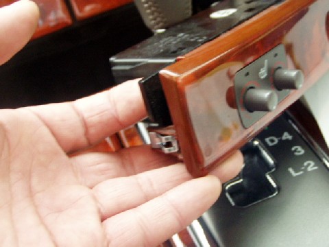 | 画像にはありませんが、ここも下側奥に手を突っ込んで引っ張り出します。 エアコン室温調整スイッチの穴からも指を突っ込んで同時に押し出せば、より簡単です。 |