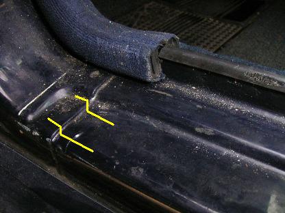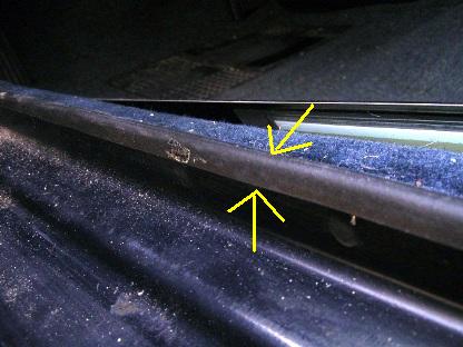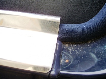 | 2005年10月25日(火) 走行238,770Km 1年前に装着したエントランスモールの浮きが気になります。 画像のように隙間が開いてきちゃうんです。 |