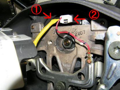 | ホーン&エアバックが外れましたが配線が2種繋がってます。 Aはコネクターで簡単に外れましたが、 @はどうやって外すのか??? |