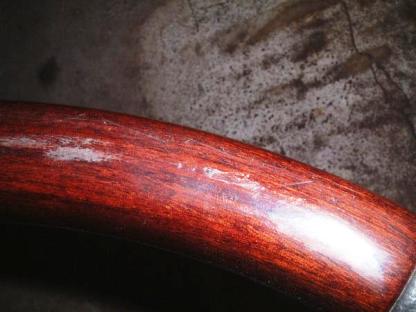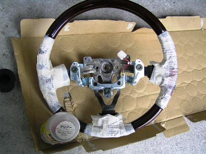 | 到着したステアリングを、洗剤を含んだ雑巾でゴシゴシ拭いて綺麗にします。 マスキングします。 クリアーの缶スプレーを噴射します。 |