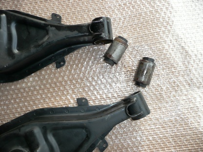 | 2011年10月29日(土) リアのロアアーム車体側のブッシュ、リアスタビライザーリンク&ブッシュ、マルチリンクは30万キロ超の現在まで1度も交換した事がありません。 何ら不都合は感じられませんが、近い将来交換したいと思います。 部品は今月初めに購入済み。 事前準備。 部品番号202-352-0165 1,113円×2個(SJより) |