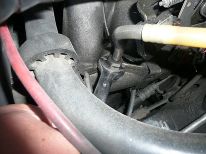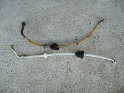 | 2008年11月2日(日) 走行293,345Km 何ら機能に問題はないのですが、外観がみすぼらしいので交換する事にしました。 ブレーキブースターからインテークマニーホールド間のバキュームホースとチェックバルブ。 |