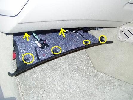 | アンダーカバーっていうんでしょうか。爪ではめ込んであるだけなので 手で下方向に押し下げれば外れます。 4つの爪が外れたら、前方に少し引き抜きます。後ろの2ヶ所差し込んであります。 |