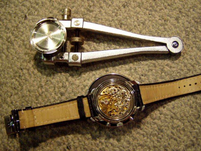 | 裏蓋を外してみました。裏蓋に0という刻印があるのでその刻印が竜頭の位置まで回します。 (45度) |