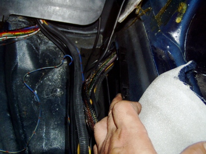 | リアシートを外す必要が・・・・ カーペットをめくるために。 このあたりの線かな? |