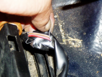 | ドアの照明の配線を見てみます。 う〜ん、やはり茶色に白線・赤色に白線ですねぇ。 この線の繋がってる車内の配線が探せれば良いのですが・・・ |