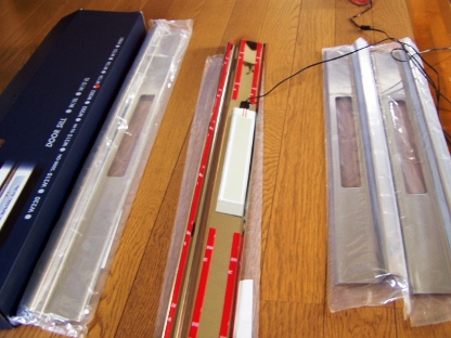 | 2004年9月18日(土) 走行 222,696Km 大昔に取り付けたステンレスのエントランスモール 10年以上前だったかな? 当時、とっても高価でした。 純正のエントランスモールに両面テープで貼り付けて取り付けます。 |