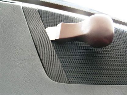 | 中に引っ込む(ステーが縮む) トモさんのお車は、この中のゴムに穴が開き内気・外気の切替不能になったそうです。 私の車もコレの交換で解決するといいなぁ〜。 |