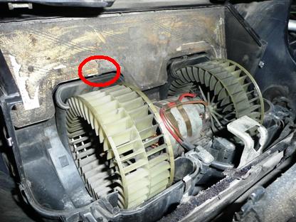 | 2010年7月3日(土) 走行320,439Km 以前内気・外気の切替が出来なくて部品交換したんですが、蓋が途中で何かに干渉しているようで、今回エバポレーター清掃をかねて原因を調べます。 ブロアーファンカバーのクリップに干渉していることが判明しました。 |