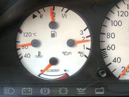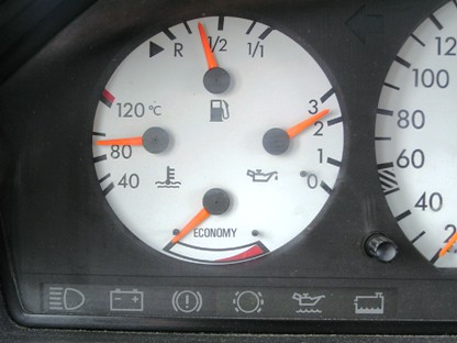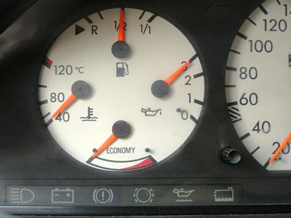 | 2007年2月24日(土) 走行263,385Km 皆さんのお車、アイドリング時、油圧計の針はいくつを指しています? 冷えてる時は、3を指してていいんですよね? |