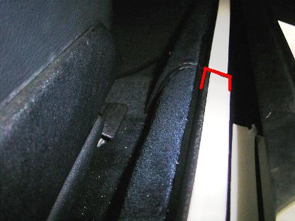 | 2005年10月25日(火) 走行238,770Km 1年前に装着したエントランスモールの浮きが気になります。 画像のように隙間が開いてきちゃうんです。 |