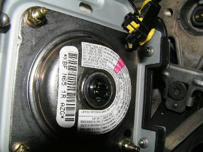 | 反対側のエアバック本体に繋がってる方 こちらの黄色の部品が何のためにあるのか気になります。 試しにマイナスドライバーを差し込んでみると上に浮き上がらせることができました。 |